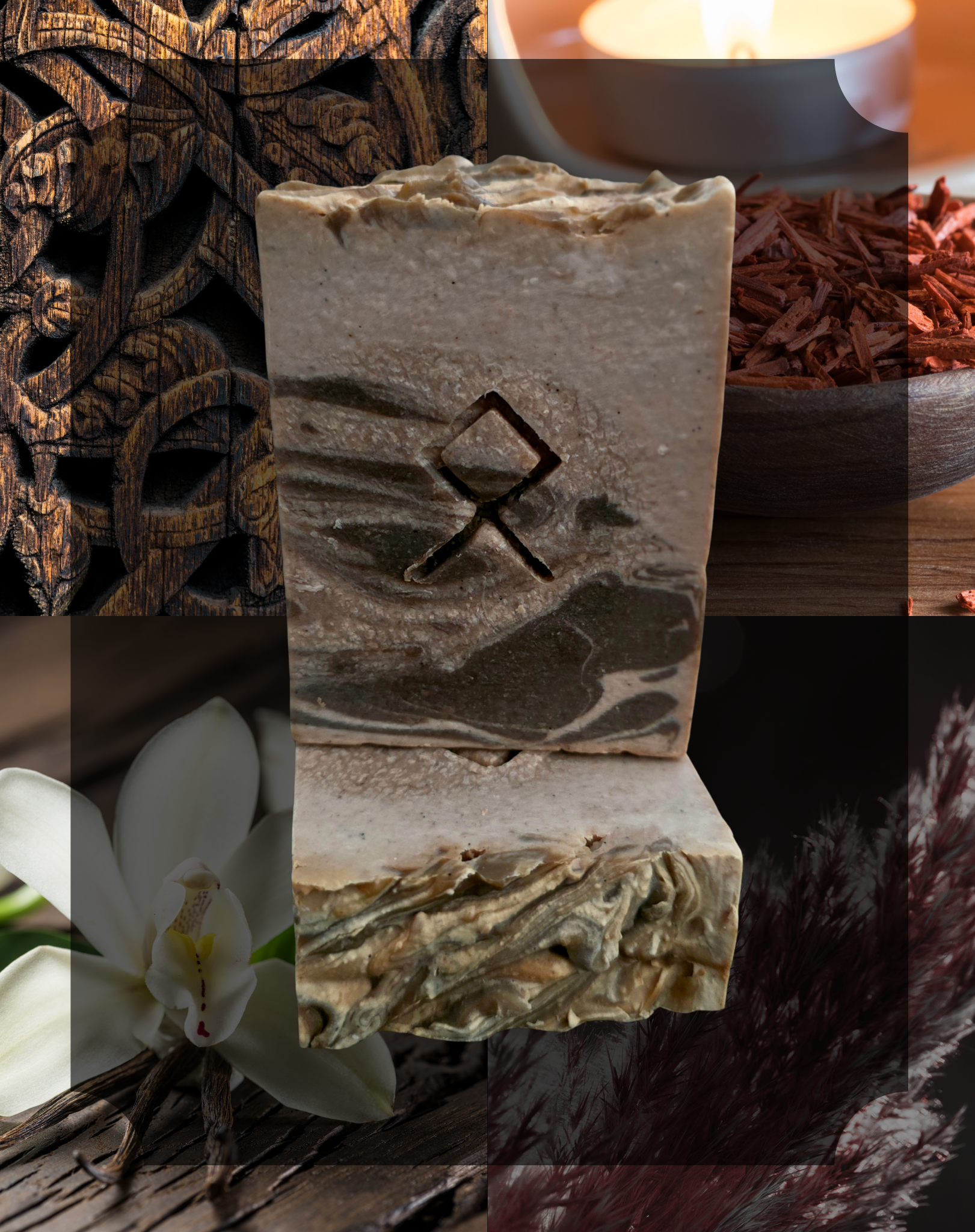 Evoke your protective nature with The Guardian Artisan Soap! Inspired by Norse culture, the Othala rune symbolizes rootedness, home and family ties to summon your nurturing spirit. Embrace the comforting aroma of sandalwood and vanilla enhanced with the skin-nourishing benefits of goat milk. Be the guardian of your home as you embark on your daily cleansing ritual!
