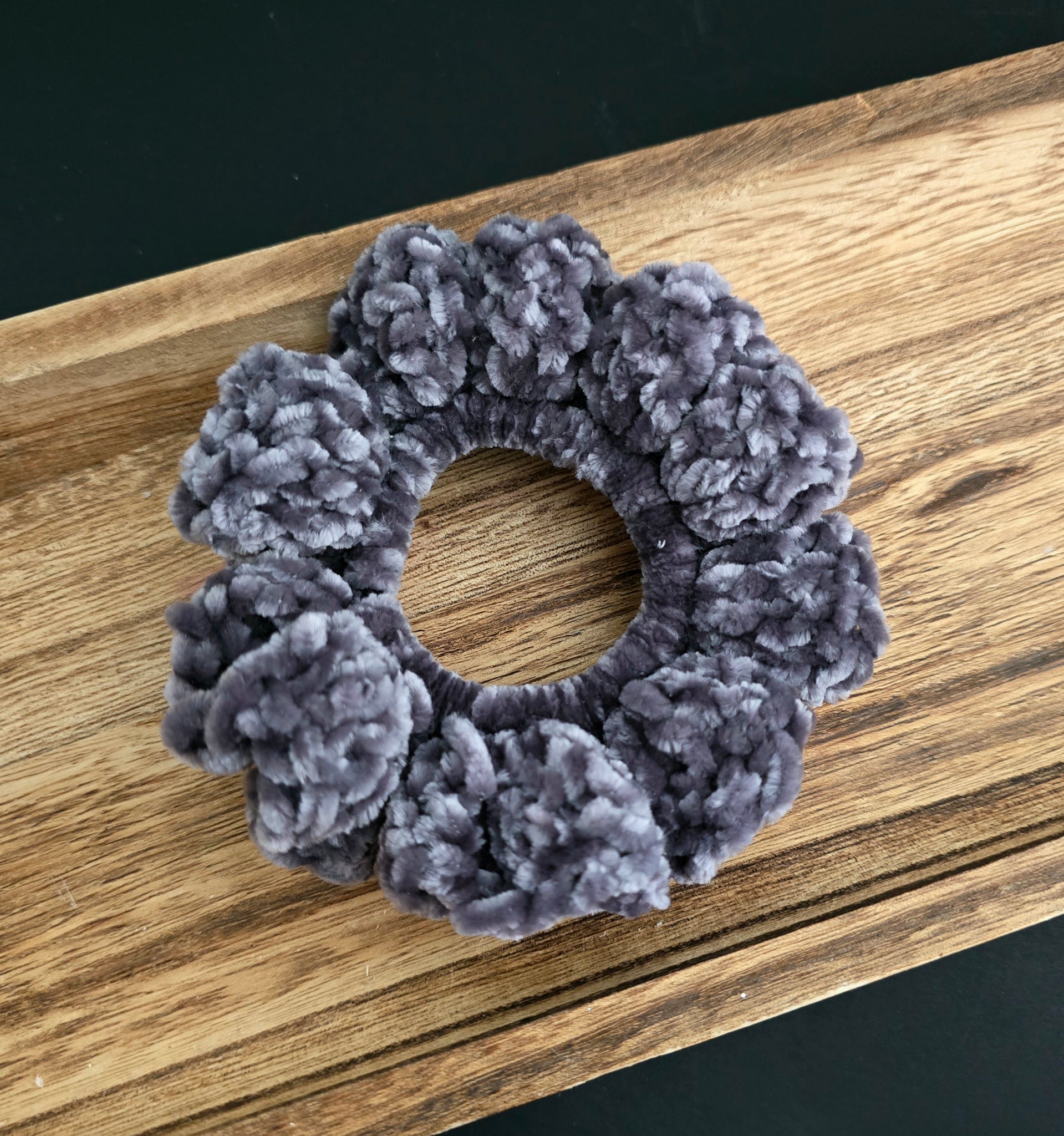 Material: 'Velvet' yarn, elastic hair tie