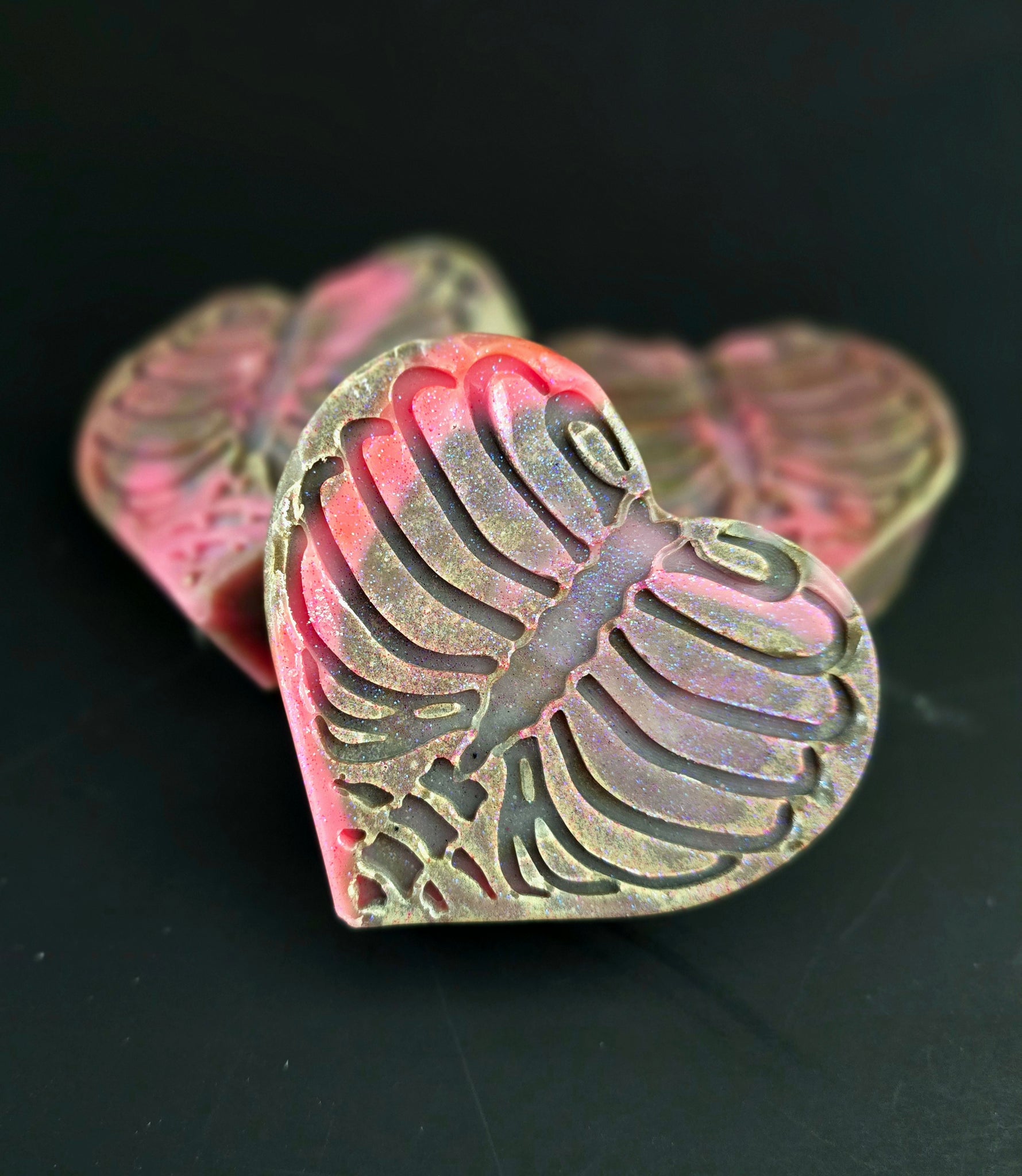 Elevate your self-care ritual with this intentionally crafted heart soap, formulated with activated charcoal to purify your skin while clearing negative energy. The pink hues embody self-love and compassion, making this soap ideal for protection work and spiritual practices. Wrapped in a luxurious blend of sensual black currant and warm vanilla, this soap transforms your daily cleanse into a meaningful moment of renewal. Perfect for those seeking beauty products that align with their spiritual journey, this heart-shaped soap combines skincare efficacy with energetic intention. Discover the power of purposeful self-care today.